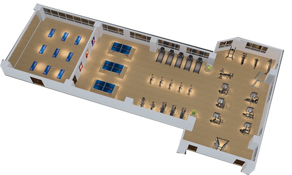此方案要求面积不小于300平米,我们会根据您个人的实际情况和场地面积而定。此方案推荐小型健身工作室、单位健身房、酒店会所健身房、学校等健身房配置。