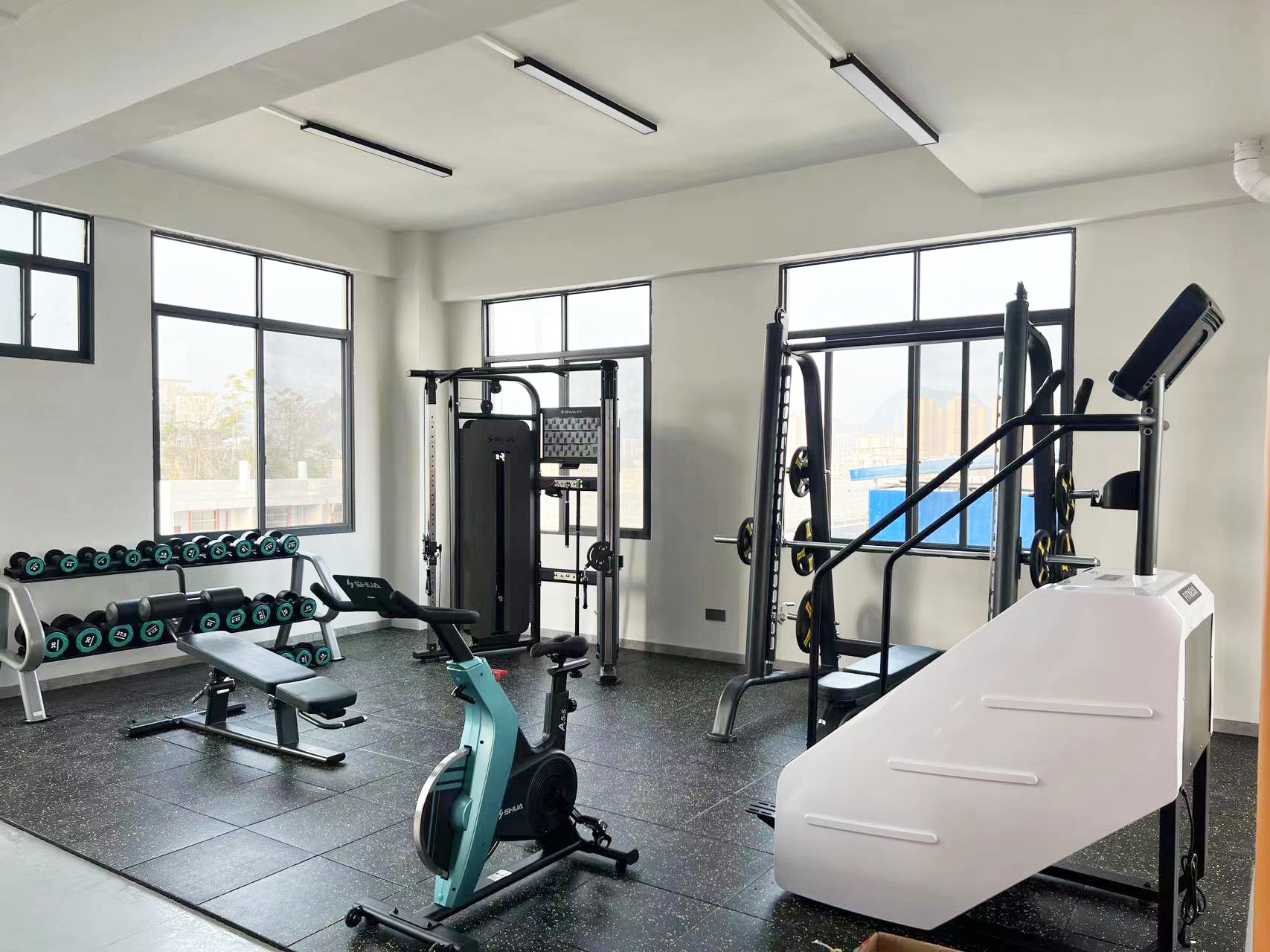力量器械配置了mk体育可调式双滑轮多功能训练器(小飞鸟)SH-G6820、史密斯机训练架SH-G6853、腹肌练习椅SH-G6879 、康健10付哑铃套组,依据锻炼方式不同,能够满足日常多肌群训练(胸、肩、背、腿),让企事业职工在有限的器材里能够得到全方位锻炼身体肌肉。让职工身体更健硕,在工作中释放激情活力,打造完美职场形象。在运动过程中增进职工之间的情感交流,促进各部门紧密融合,增强职工归属感,增强企事业的凝聚力。